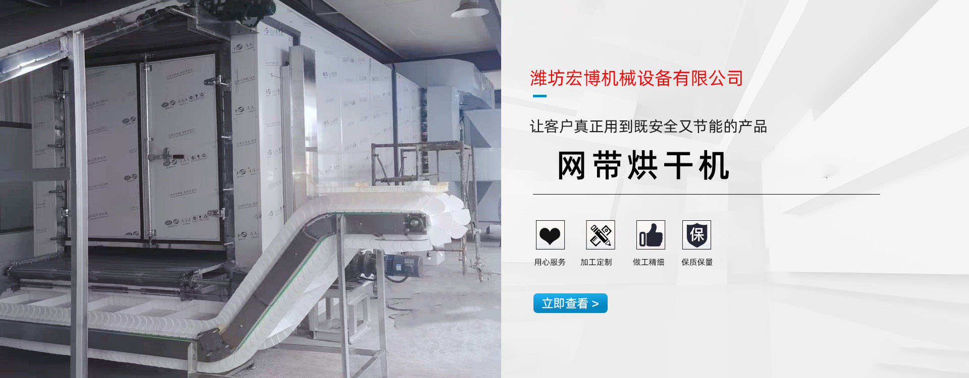 宏博公司主要產(chǎn)(chǎn)品有:網(wǎng)(wǎng)帶烘干機(jī)、食品烘干機(jī)、滾筒烘干機(jī)、隧道窯、烘干箱、燃?xì)鉄犸L(fēng)(fēng)爐、高大車間供暖設(shè)(shè)備、礦用防爆電加熱器等。